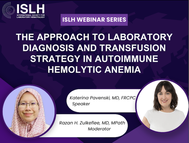 Giovedì 19 febbraio alle 17 italiane (11:00 AM ET), Katerina Pavenski, MD, FRCPC, St. Michael’s Hospital – Unity Health Toronto; Associate Professor; University of Toronto, Toronto, Canada presenterà un seminario dal titolo: "The Approach to Laboratory Diagnosis and Transfusion Strategy in Autoimmune Hemolytic Anemia".